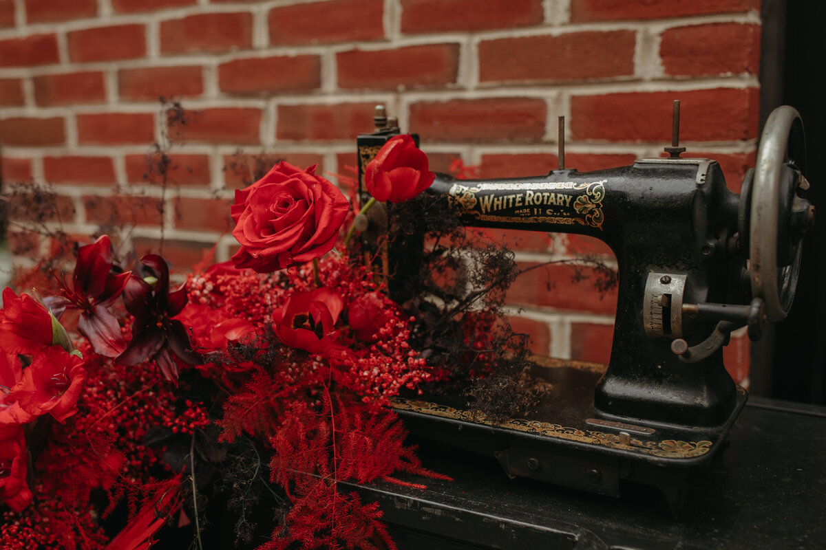 Alysha & Aaron had a fiery downtown wedding at Gunther & Co. in Baltimore, planned by Sentimental Fools Events. Aaron & Alysha are huge ambassadors of the city of Baltimore and own a tailor shop, an extension of their home, serving their city well. This celebration was bold, lively, and full of character with pops of red at every turn. Yarrow Floral Co. came through with bursting red floral arrangements to adorn the space and match this Baltimore Homecoming theme, an ode to this beautiful city. Our bride carried a rich red bouquet which was a beautiful contrast to her white Allure Bridal off the shoulder gown. Aaron, being the talented tailor and owner of Bushelers of Baltimore that he is, designed his and his groomsman's tuxes. He also donned a custom felt hat from that his officiant made, making for a classy get up.